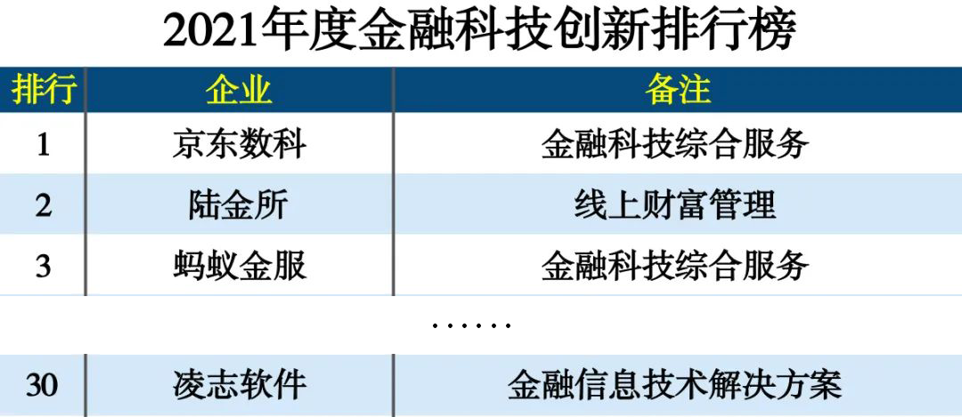 凌志软件跻身“2021金融科技创新排行榜30强”
